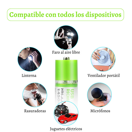 Pilas recargables usb AA 1450 mAh baterías domésticas 1.2v