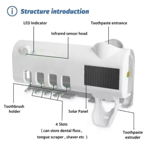 Dispensador de pasta dental y porta cepillos con luz UV para una higiene avanzada
