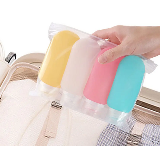 Kit 4 frascos de silicon con estuche transparente para viajes