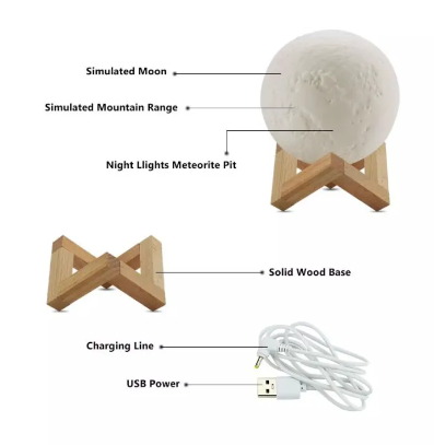 Difusor diseño inspirado en la luna humidificador de ambiente con 3 tonos de luz