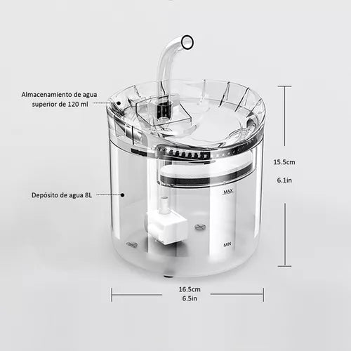Dispensador bebedero inteligente de agua para mascota 1,8L