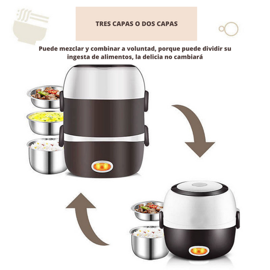 Lonchera eléctrica doble 4 recipientes portátil 2L 200w fiambrera