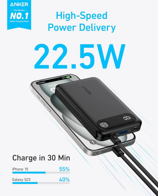 Anker Power Bank 10.000 mAh Cargador Portátil con cable de USB-C incorporado