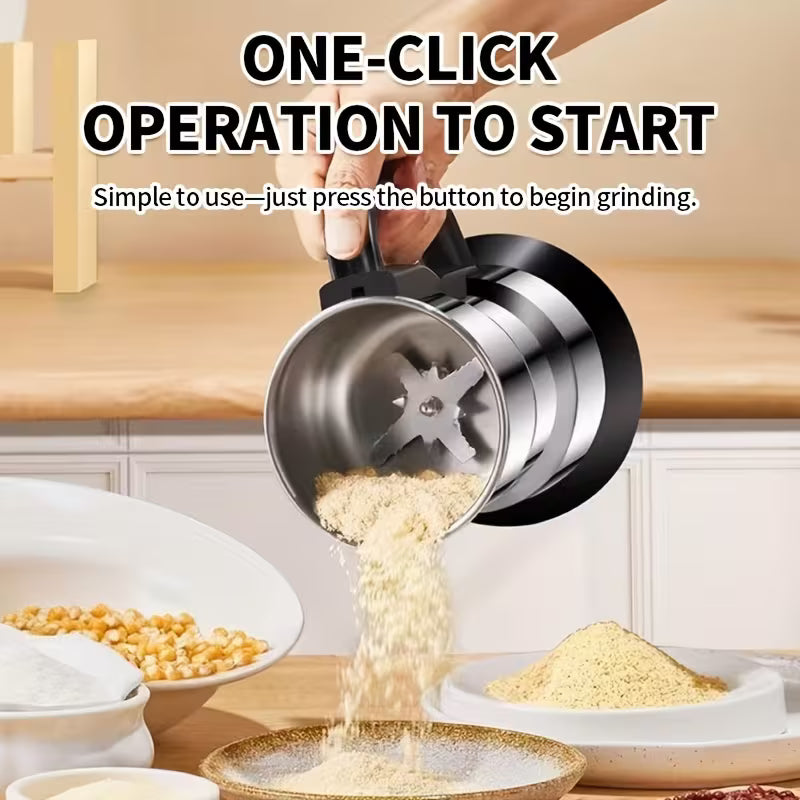 Su potente motor y cuchillas de acero inoxidable de alta calidad garantizan una molienda uniforme y rápida, mientras que su diseño compacto y tapa de seguridad transparente facilitan un control total sobre la textura, convirtiéndolo en un aliado indispensable para elevar el sabor de tus recetas y bebidas diarias.