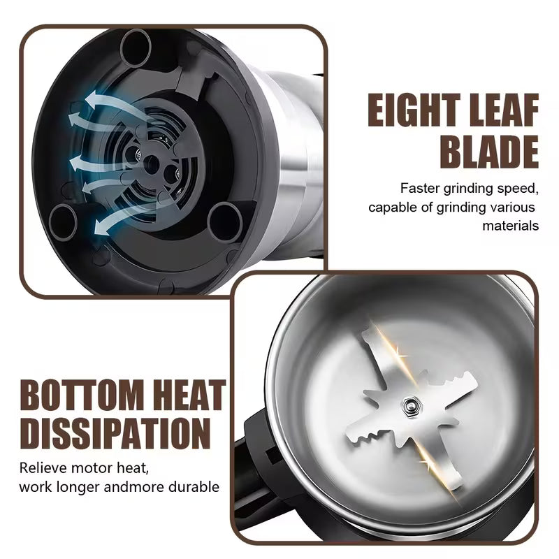 Molino Eléctrico Triturador de Café, Granos y Especias en Acero Inoxidable